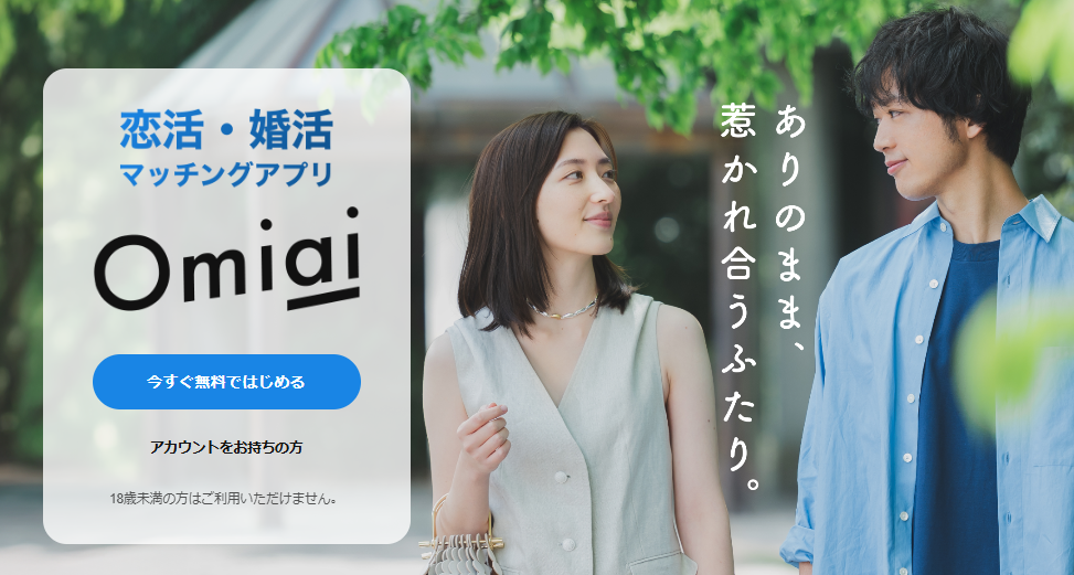 - Omiai(オミアイ):安全対策が充実し、真剣度の高いユーザーが多い